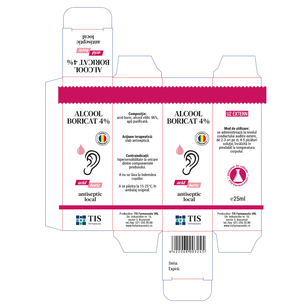 Alcool boricat, 4%, 25 ml, Tis Farmaceutic [6422068003245]
