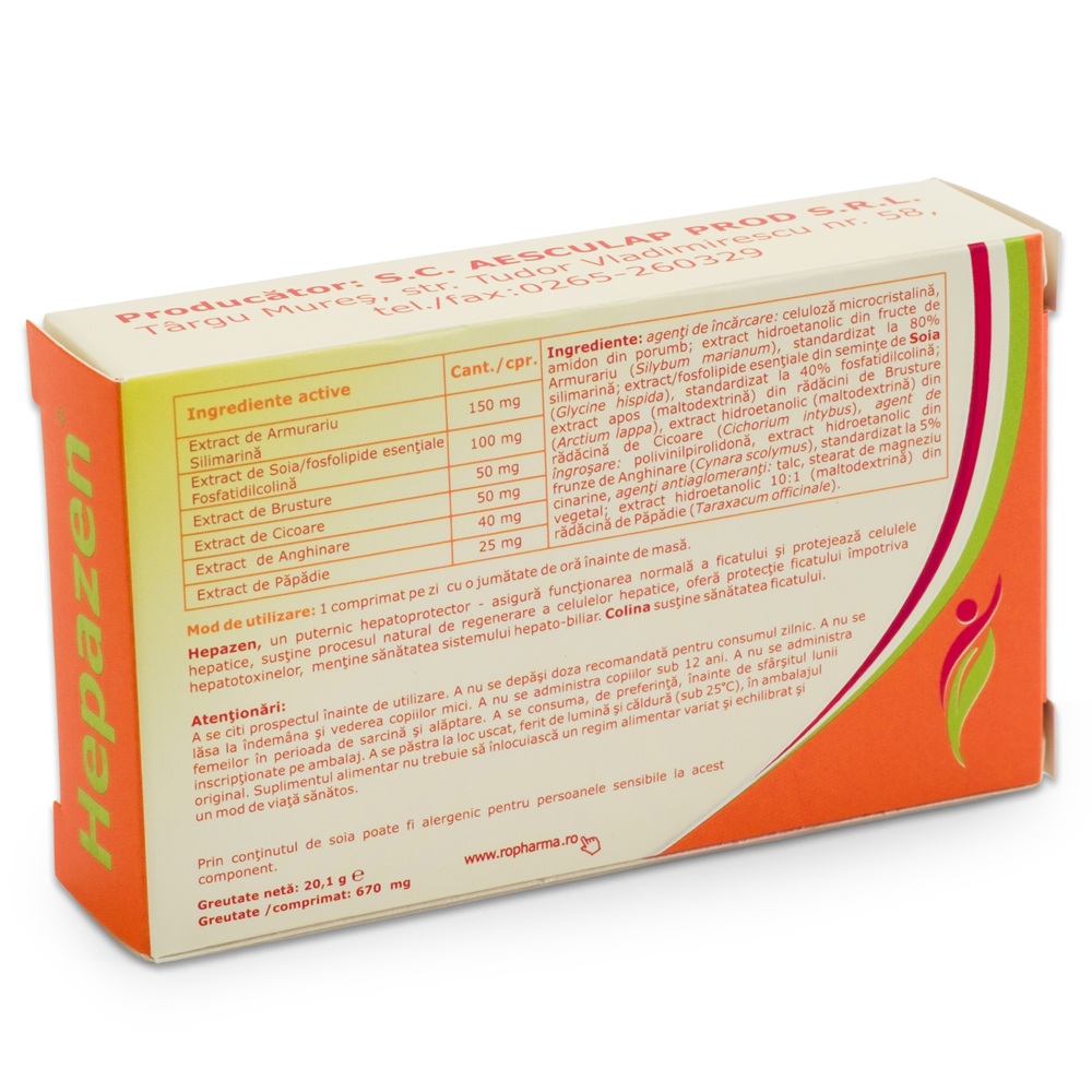 Hepazen 30 comprimate Aesculap(poate contribui la sanatatea ficatului) face parte din categoria supliment alimentar grupa preparate fitoterapice investigatii si analize de laboratortransaminazele.