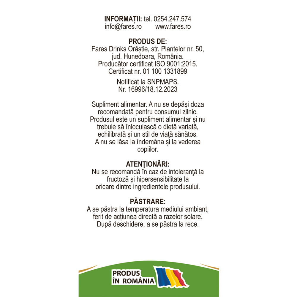 ATENŢIONĂRI: Nu se recomandă în caz de intoleranţă la fructoză și hipersensibilitate la oricare dintre ingredientele produsului.