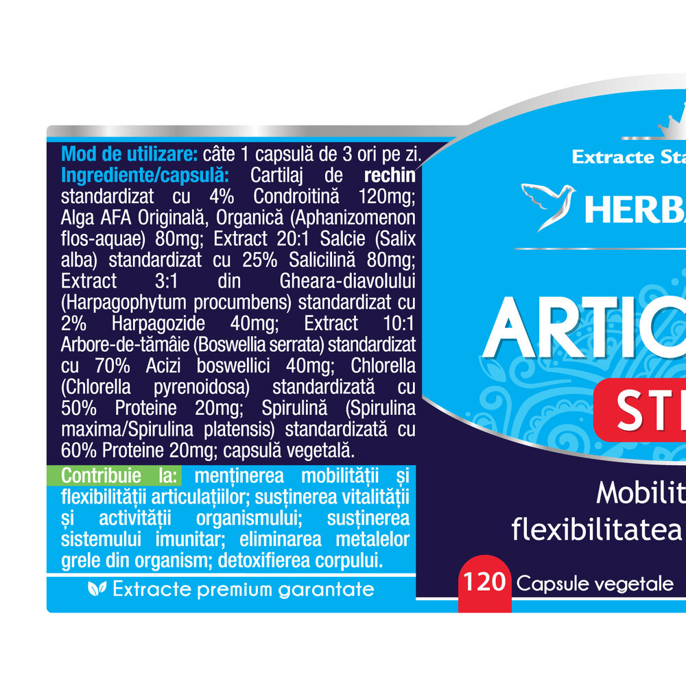 Cartilaj de rechin standardizat cu 4% Condroitina 120 mg; Alga AFA Originala, Organica (Aphanizomenon flos-aquae) 80 mg; Extract 20:1 Salcie (Salix alba) standardizat cu 25% Salicilina 80 mg; Extract 3:1 din Gheara-diavolului (Harpagophytum procumbens) standardizat cu 2% Harpagozide 40 mg; Extract 10:1 Arbore-de-tamâie (Boswellia serrata) standardizat cu 70% Acizi boswellici 40 mg; Chlorella (Chlorella pyrenoidosa) standardizata cu 50% Proteine 20 mg; Spirulina (Spirulina maxima/Spirulina platensis) standardizata cu 60% Proteine 20 mg; capsula: vegetala.