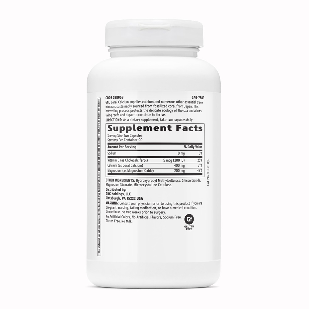 Calciu Coral 400 mg 180 capsule GNC(cu magneziu si vitamina D3) face parte din categoria supliment alimentar grupa minerale , contine ingrediente activecalciul.