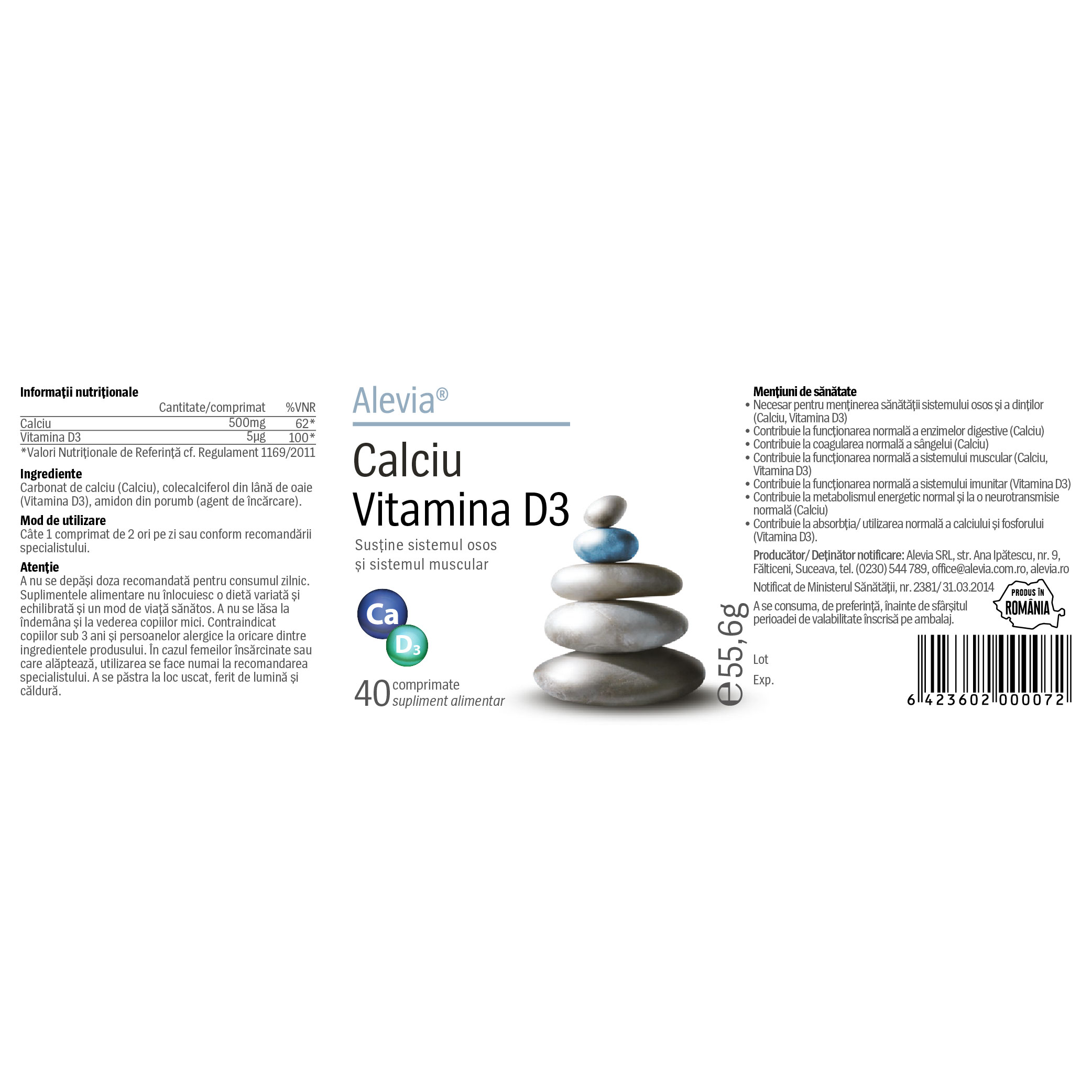 Informatii despre Calciu + Vitamina D3, 40 comprimate, Alevia s-ar putea gasi in articolele: