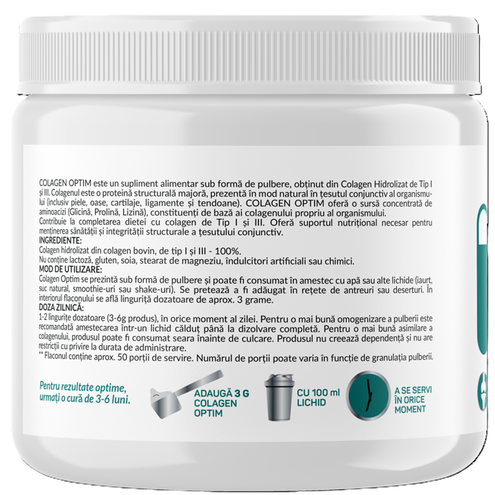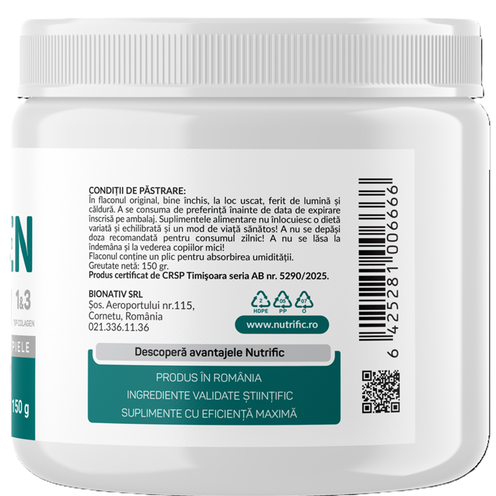 Colagen Optim 3000 mg 150 g Nutrific(pentru articulatii, muschi, unghii, piele) face parte din categoria supliment alimentar.