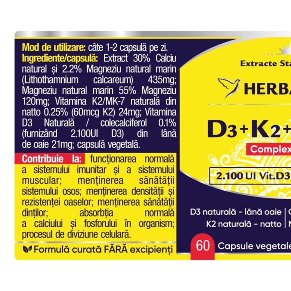 Complex natural cu Vitamina K2, Vitamina D3, din surse superioare Magneziu și Calciu 100 % naturale care: