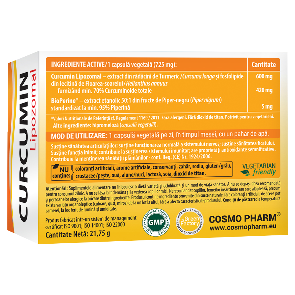 Curcumin Lipozomal, 600 mg, 30 capsule, Cosmo Pharm [6424272016592]