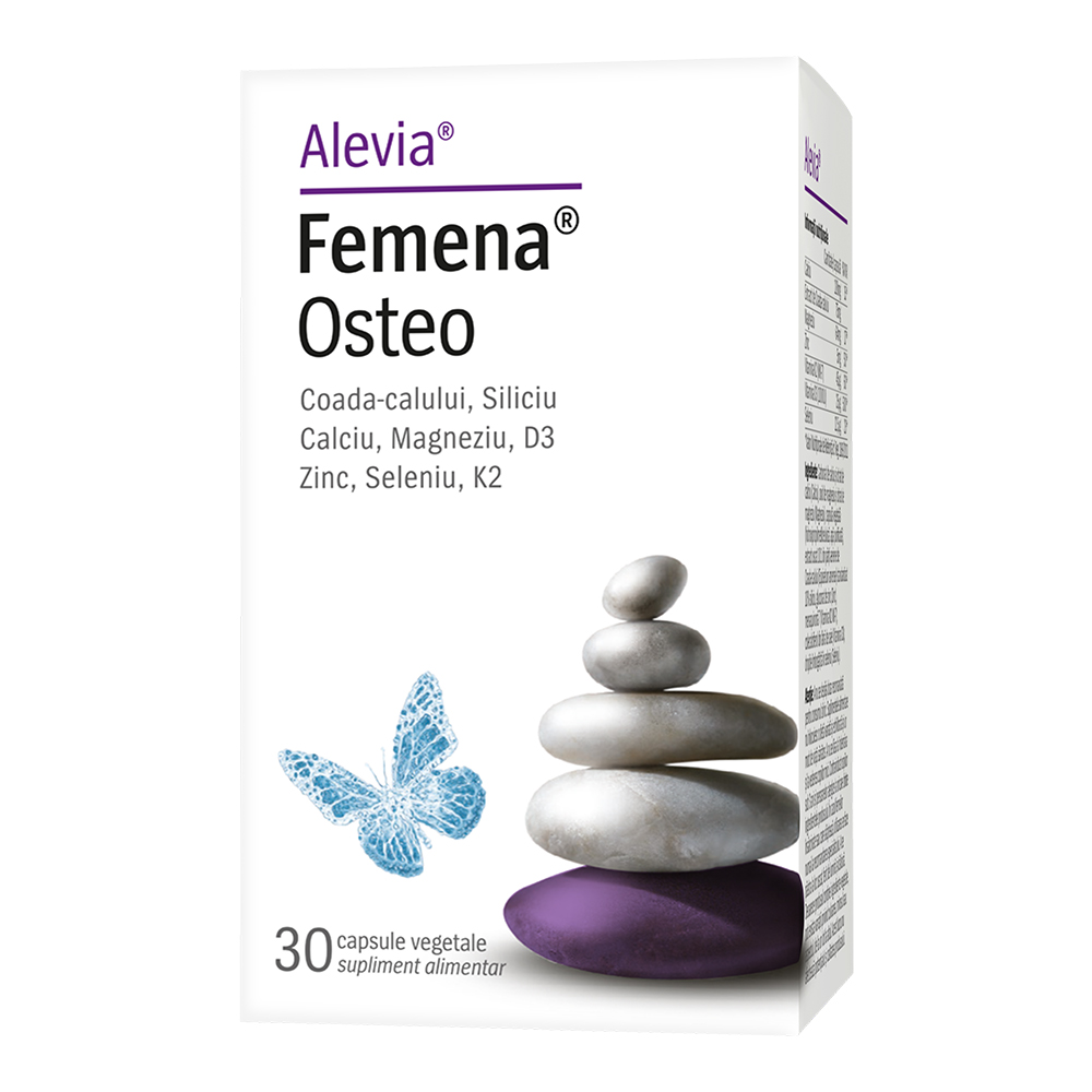 Femena Osteo 30 capsule vegetale Alevia(contine coada calului, siliciu, calciu, magneziu, D3, zinc, seleniu si K2) face parte din categoria supliment alimentar.