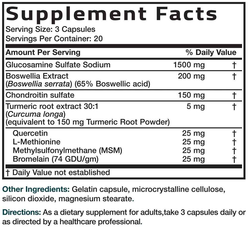 - formula Bowswellia standardizată și glucozamină fără crustacee pentru un aport superior.