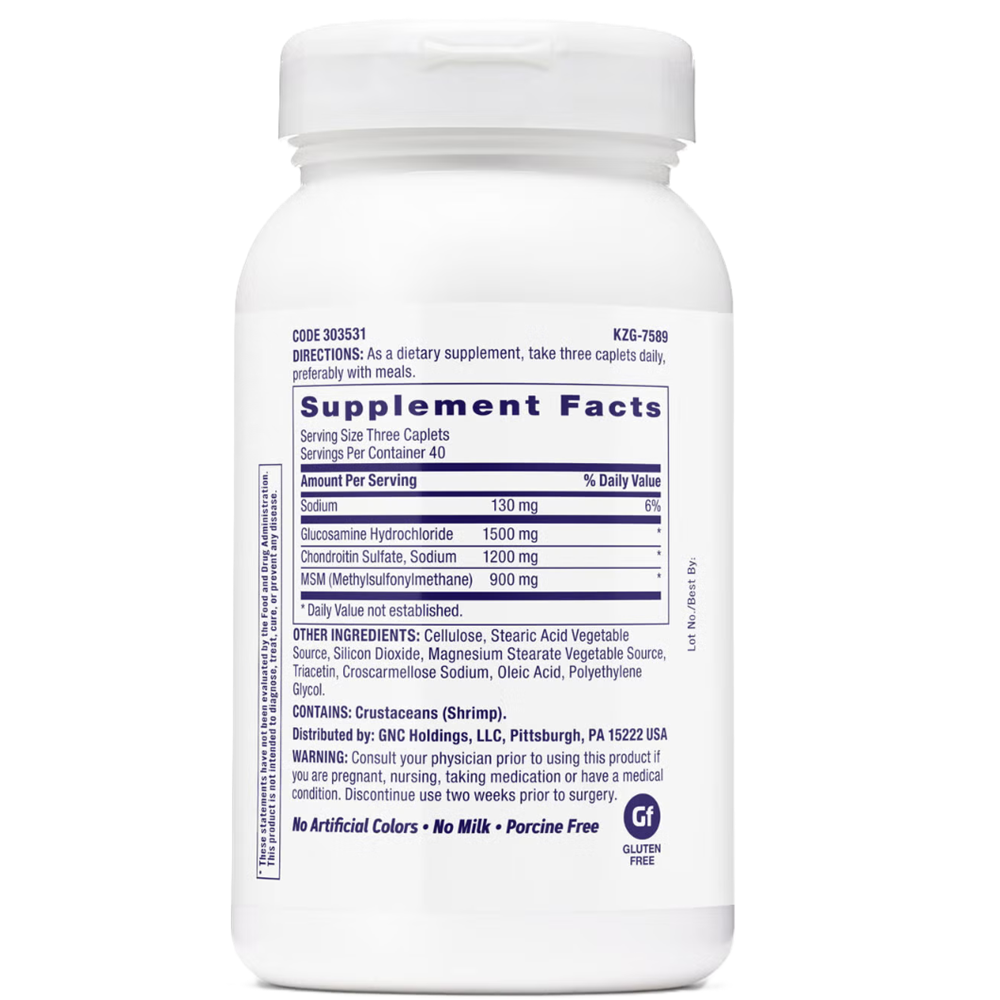 Ingrediente:Compozitie / portie: Sodiu 130 mg (5%†), glucosamina hidroclorid 1500 mg (), sulfat de condroitina, sodiu 1200 mg (), MSM (metilsulfonilmetan) 900 mg (), acid hialuronic (hialuronat de sodiu) 5 mg ().