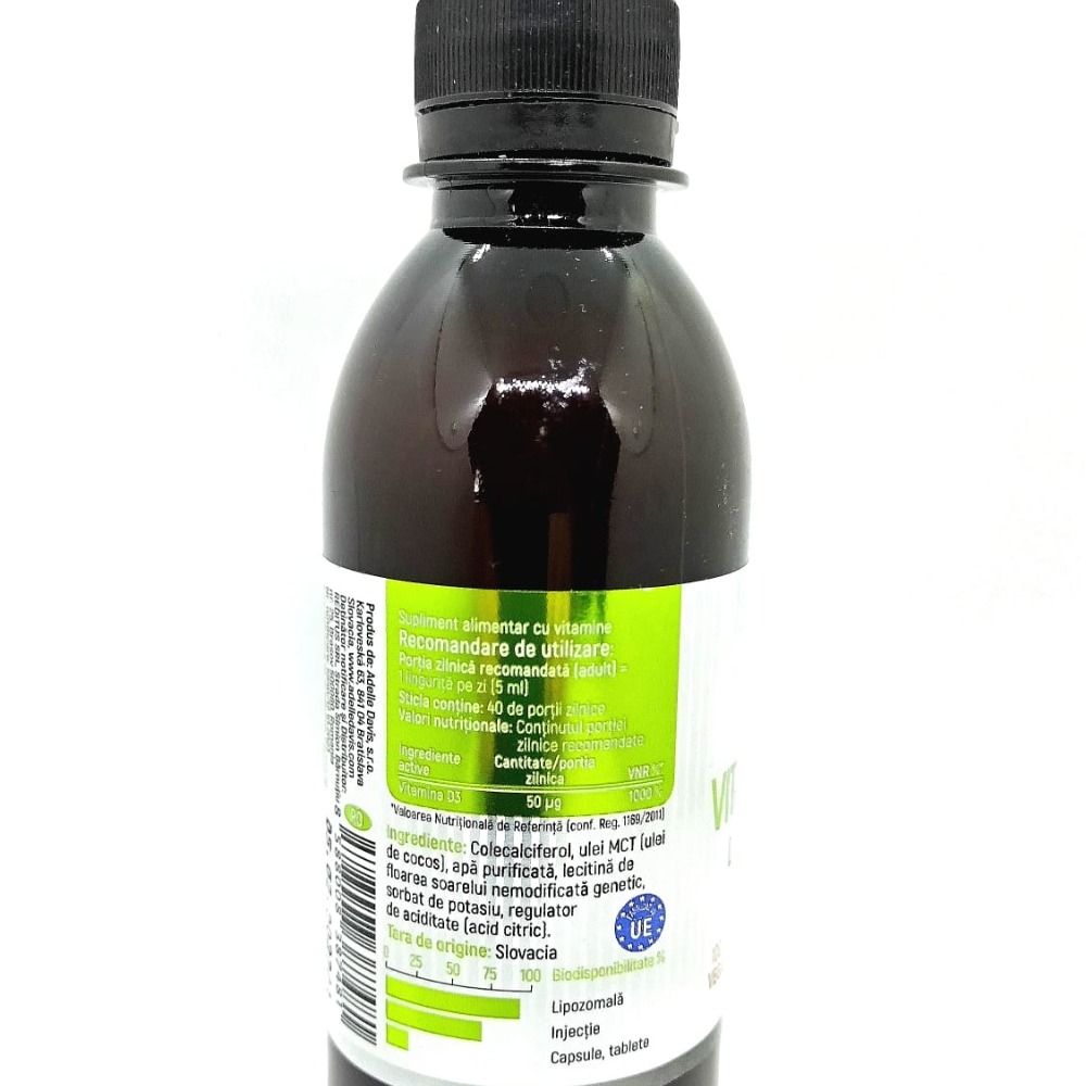 Colecalciferol, ulei MCT (ulei de cocos), apă purificată, lecitină de floarea soarelui nemodificată genetic, sorbat de potasiu, regulator de aciditate (acid citric).