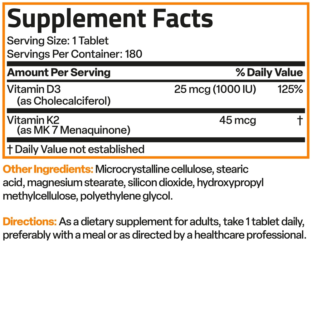 Vitamina K2 45 mcg cu D3 23 mcg, 180 tablete, Bronson Laboratories