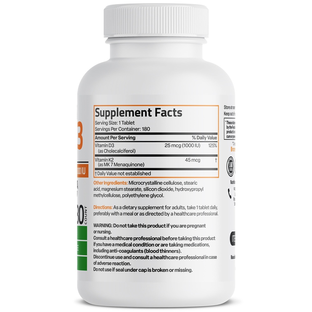 Vitamina K2 45 mcg cu D3 23 mcg, 180 tablete, Bronson Laboratories [0716563124717]