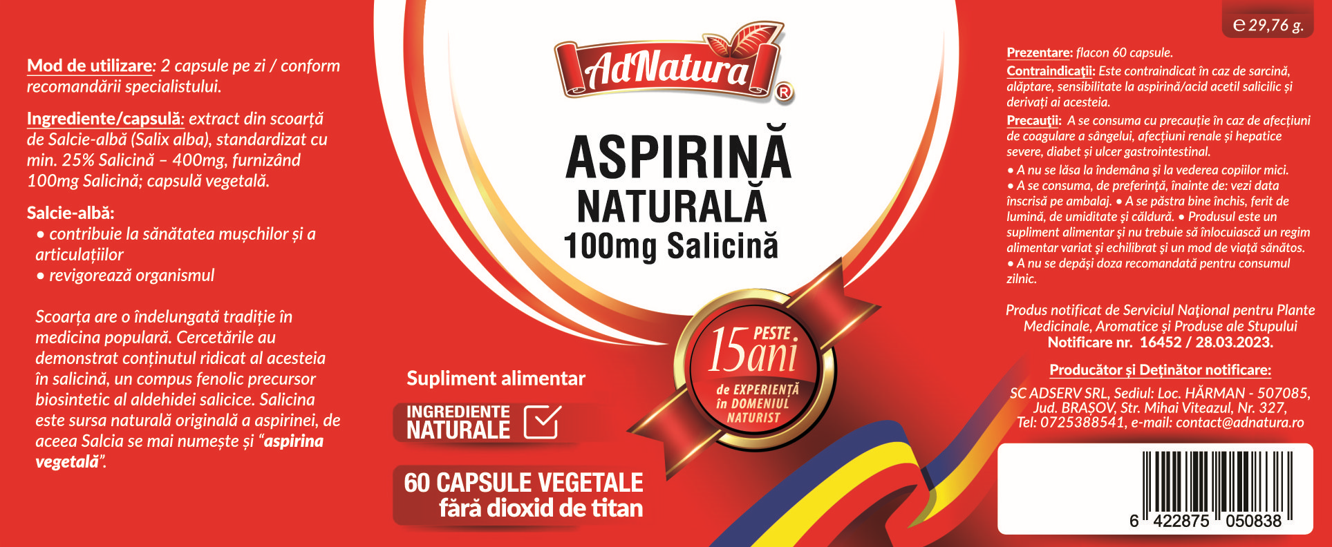 Ingrediente:Per capsulă: extract din scoarţă de Salcie-albă (Salix alba), standardizat cu min. 25% Salicină - 400mg, furnizând 100mg Salicină; capsula vegetală.