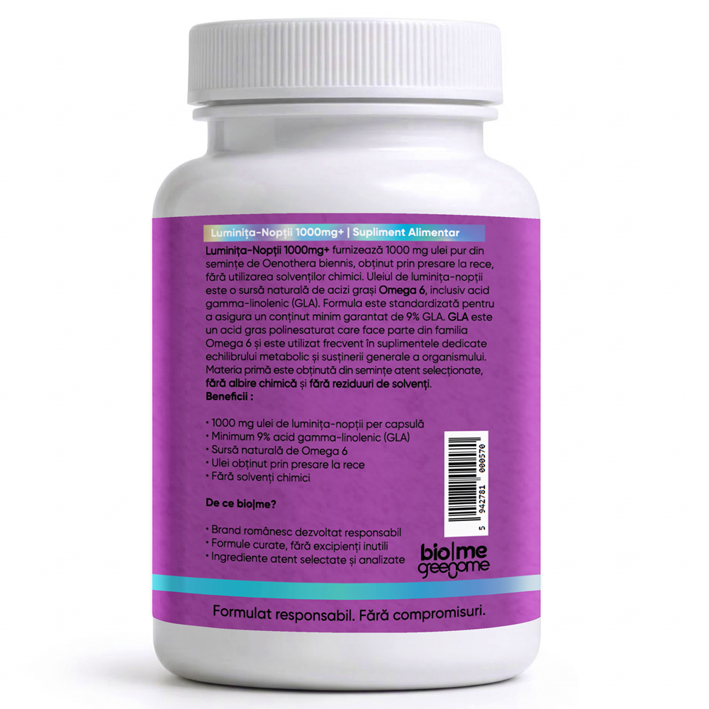 | Ulei de Luminița-Nopții (Oenothera biennis) – conține acid gamma-linolenic (GLA) min. 9% | 1000 mg | - |