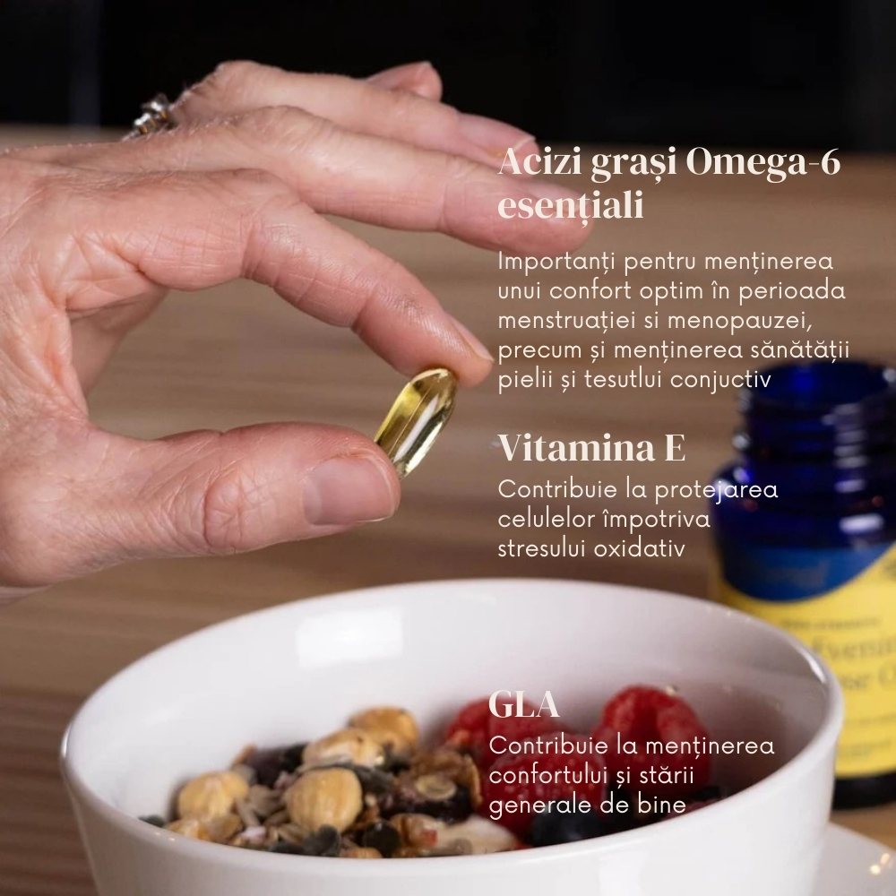 - luminita-noptii furnizeaza acizi grasi polinesaturati, care pot contribui la mentinerea unui confort optim in perioada menstruatiei si la mentinerea sanatatii pielii si a tesutului conjunctiv.