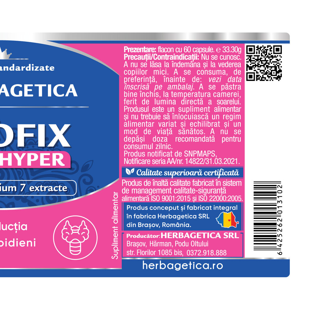 Extract 2:1 Lycopus europaeus 120 mg; Extract 4:1 Leonurus cardiaca 120 mg; Extract Roinita 5% Acid rozmarinic 60 mg; Extract Ginseng-Siberian 0,8% Eleutherozide 60 mg; Extract 4:1 Galium verum (Sanziana) 60 mg; Extract 4:1 Crataegus monogyna (Paducel) 25 mg; Drojdie-de-bere imbogatita cu Seleniu 10 mg; capsula: gelatina.