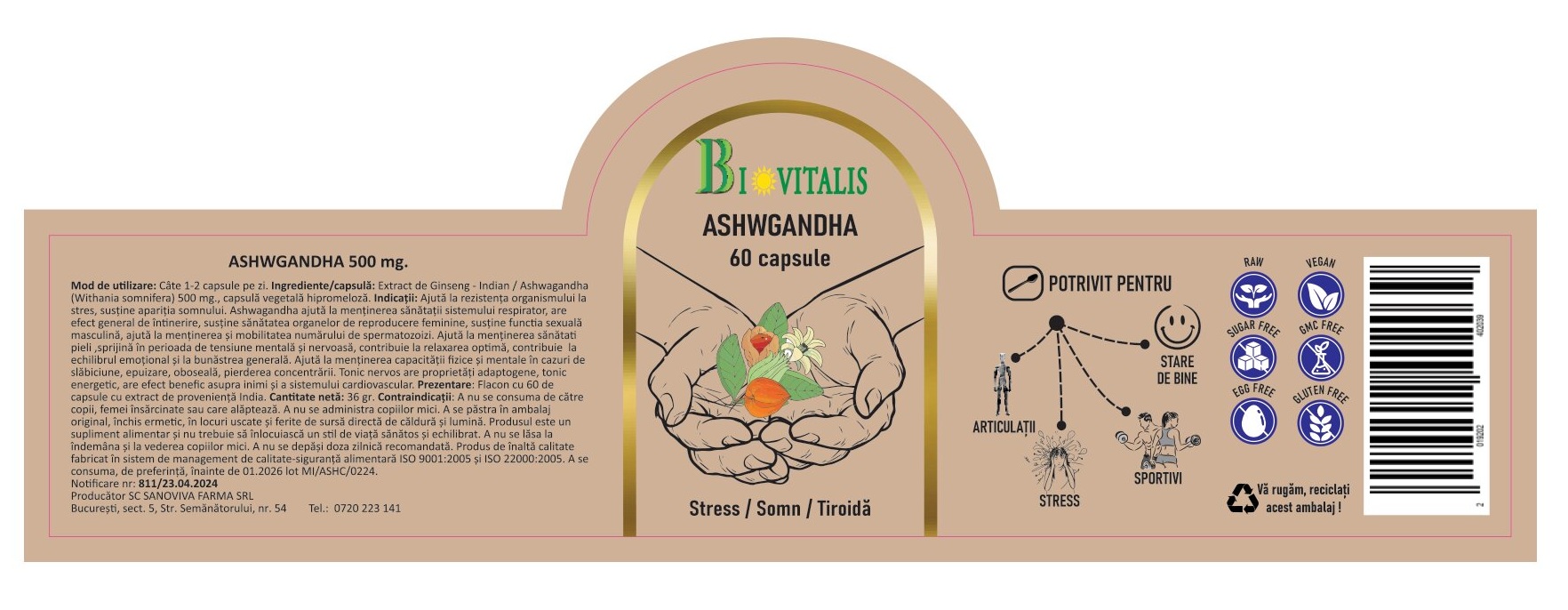 Ingrediente:Per capsula: Extract de Ginseng - Indian / Ashwagandha (Withania somnifera) 500 mg.