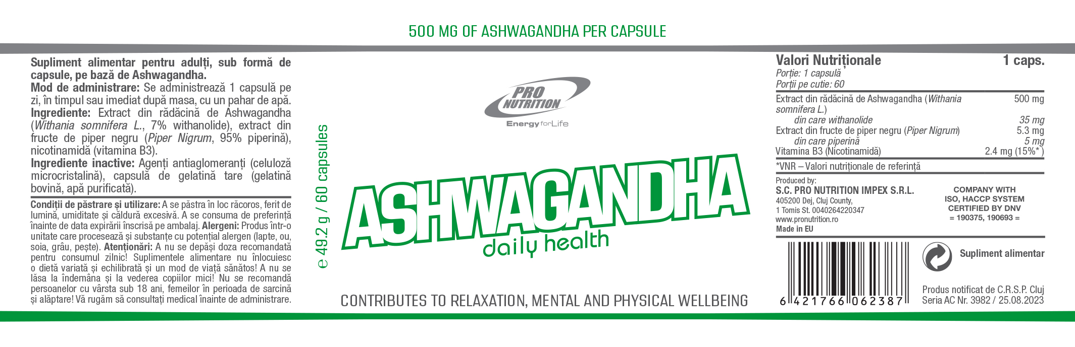 Ashwagandha Daily Health, 60 capsule, Pro Nutrition [6421766062387]