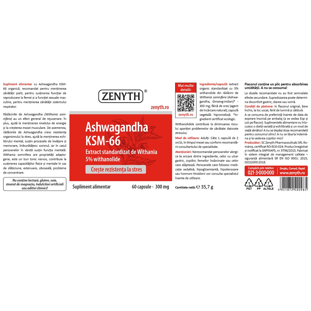 - supliment alimentar cu Ashwagandha KSM-66 organica ce poate contribui la mentinerea sanatatii pielii, la sustinerea functiei de reproducere la femei si a functiei sexuale masculine;