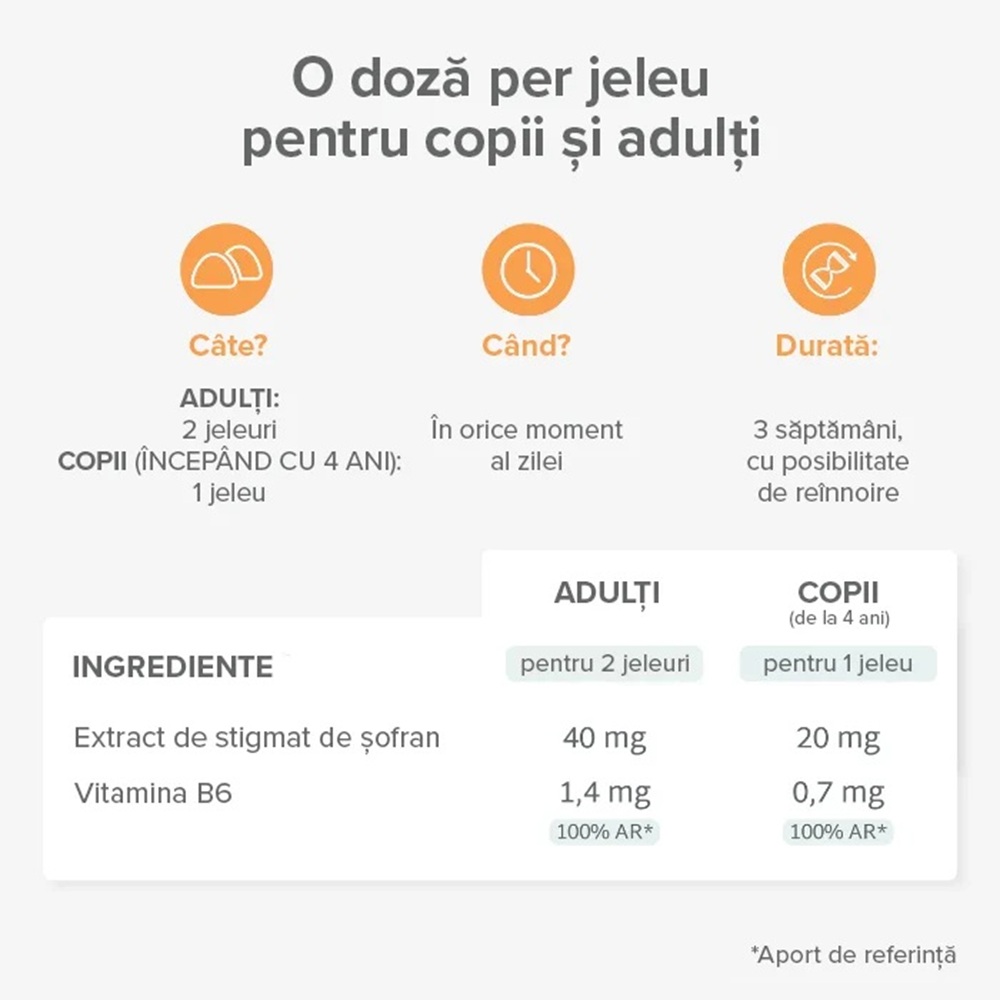 Copii(incepand de la 4 ani): 1 jeleu pe zi.