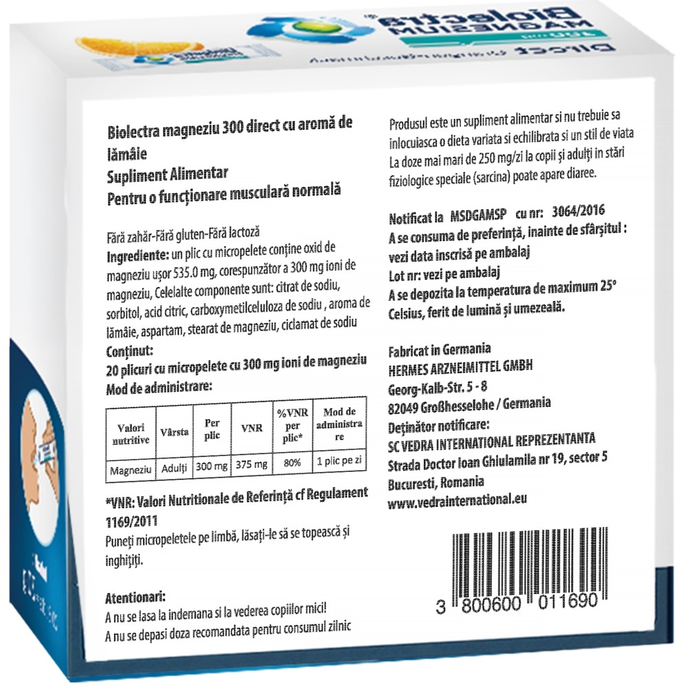 | Magneziu | Adulți | 300 mg | 375 mg | 80% | 1 plic pe zi |