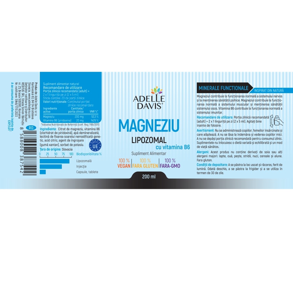Magneziu Lipozomal cu Vitamina B6, 200 ml, Adelle Davis [8588008387542]