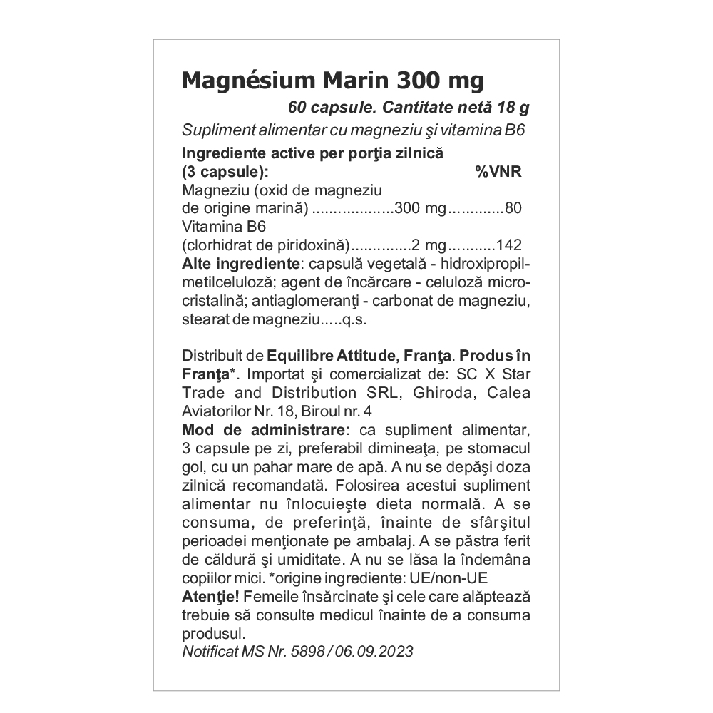 - este un supliment alimentar pe baza de magneziu de origine marina si vitamina B6, intr-o formula cu biodisponibilitate ridicata;