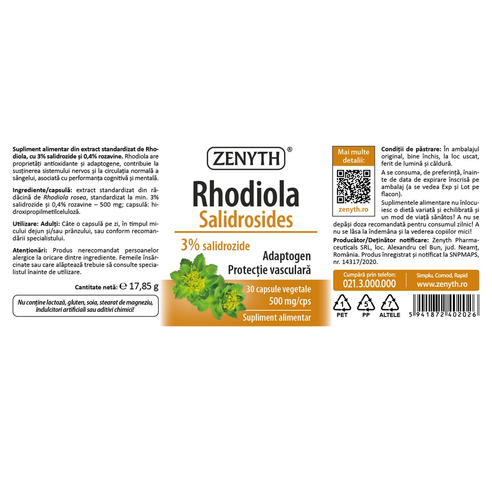 Rhodiola Salidrosides, 30 capsule vegetale, Zenyth [5941872402026]