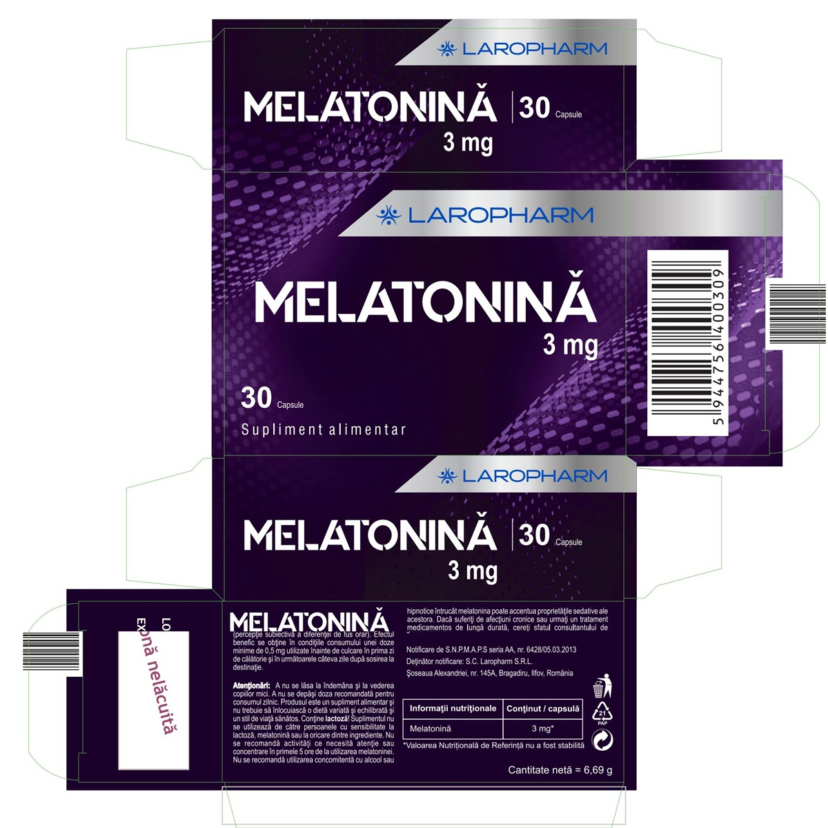 Melatonina 3 mg 30 capsule Laropharm face parte din categoria supliment alimentar , contine ingrediente activemelatonina.