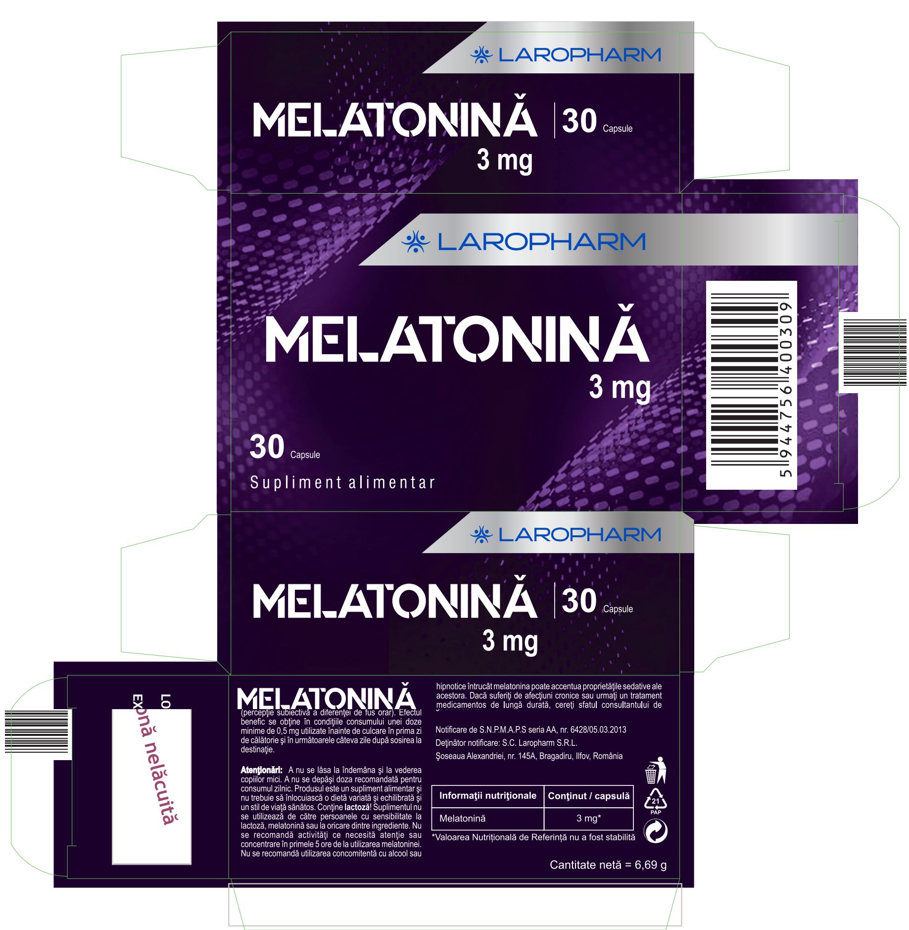 Melatonina, 3 mg, 30 capsule, Laropharm [5944756400309]