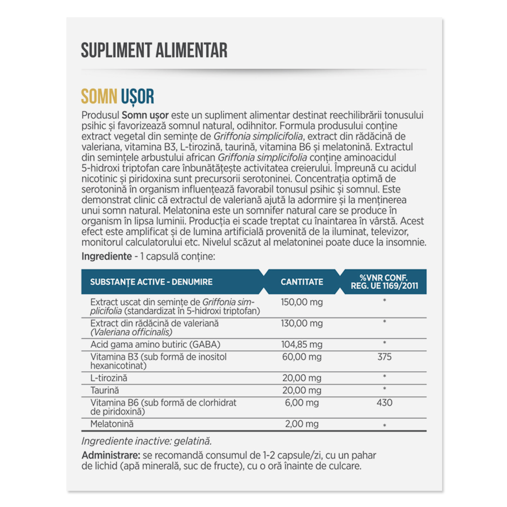 Precautii:Suplimentele alimentare nu înlocuiesc o dietă variată, echilibrată și un mod de viață sănătos.