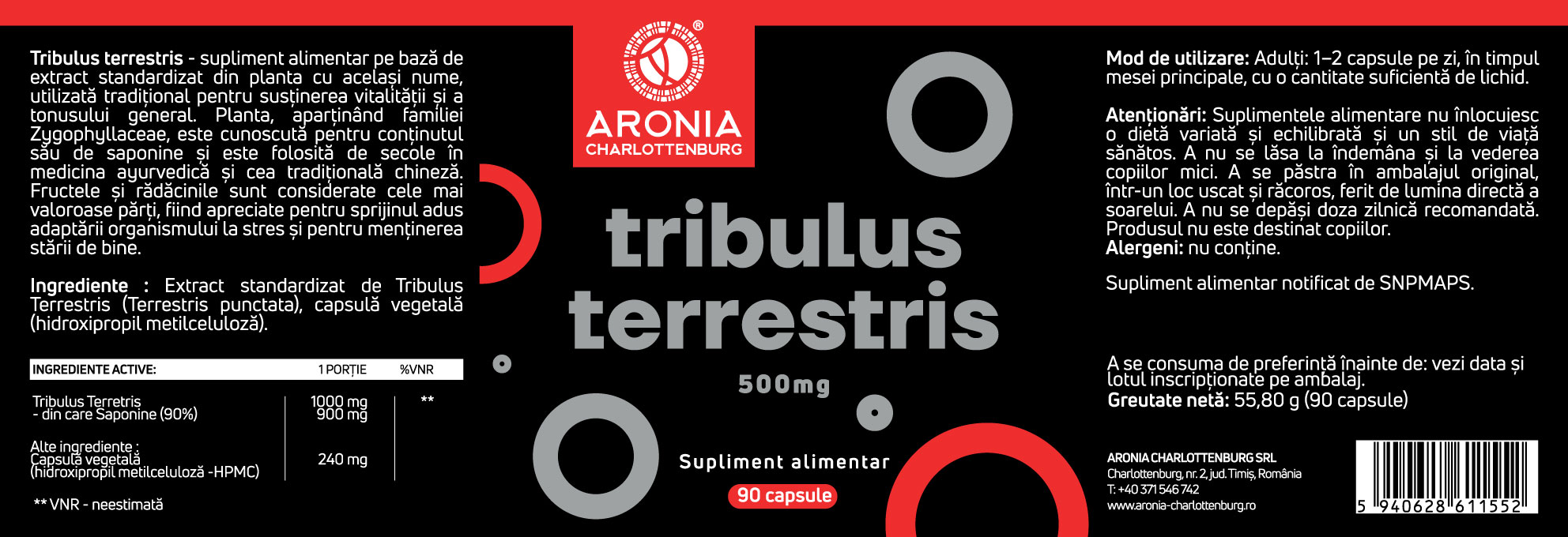Extract standardizat de Tribulus Terrestris (Terrestris punctata), capsula vegetala (hidroxipropil metilceluloza).