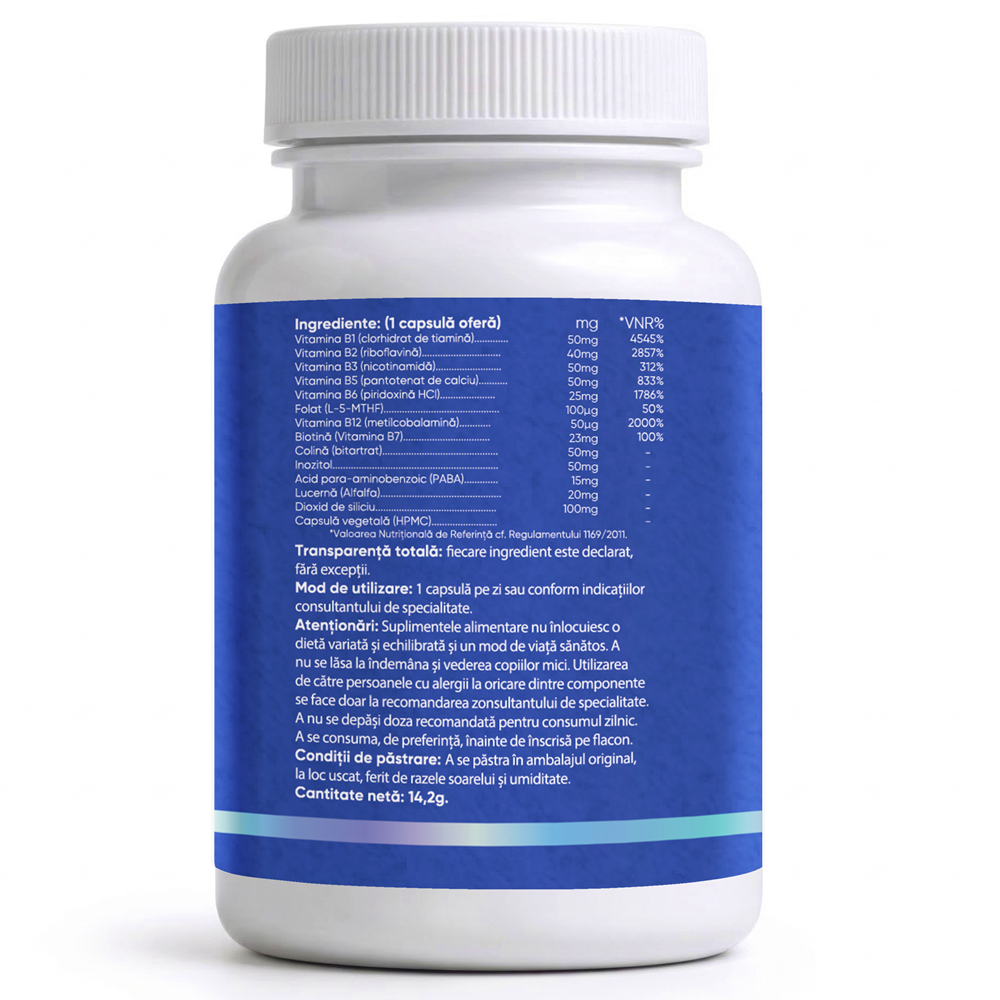 - reuneste toate vitaminele din grupul B intr-o formula echilibrata, optimizata pentru biodisponibilitate si eficienta metabolica;