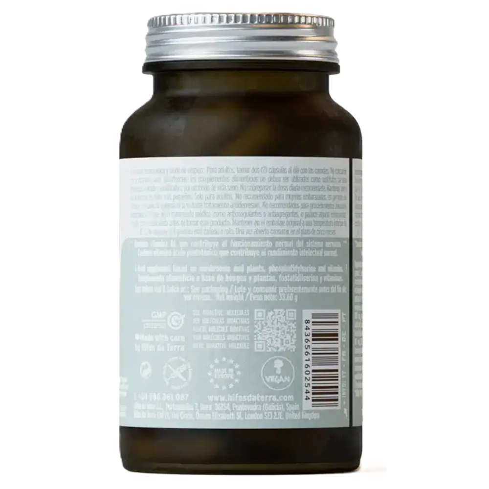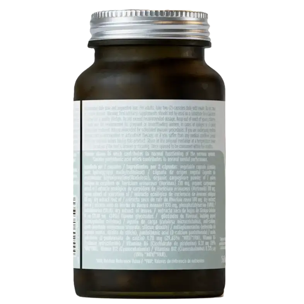 - contine extracte din ciuperci medicinale Hericium erinaceus (Coama de leu) si Inonotus obliquus (Chaga), fosfatidilserina si vitaminele B5, B6 si B12;