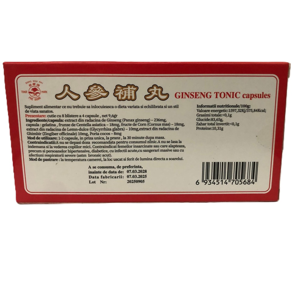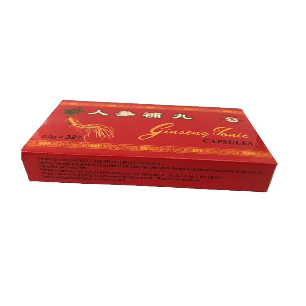Ingrediente:Extract din radacina de Ginseng (Panax ginseng) – 236mg, capsula : gelatina , frunze de Centella asiatica – 18mg, fructe de Corn (Cornus mas) – 18mg, extract din radacina de Lemn-dulce (Glycyrrhiza glabra) – 10mg,extract din radacina de Ghimbir (Zingiber officinale) 10mg, Poria cocos 8 mg.
