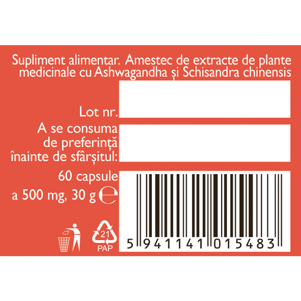 Ameste de extracte de plante cu Ashwagandha si Schisandra chinensis.