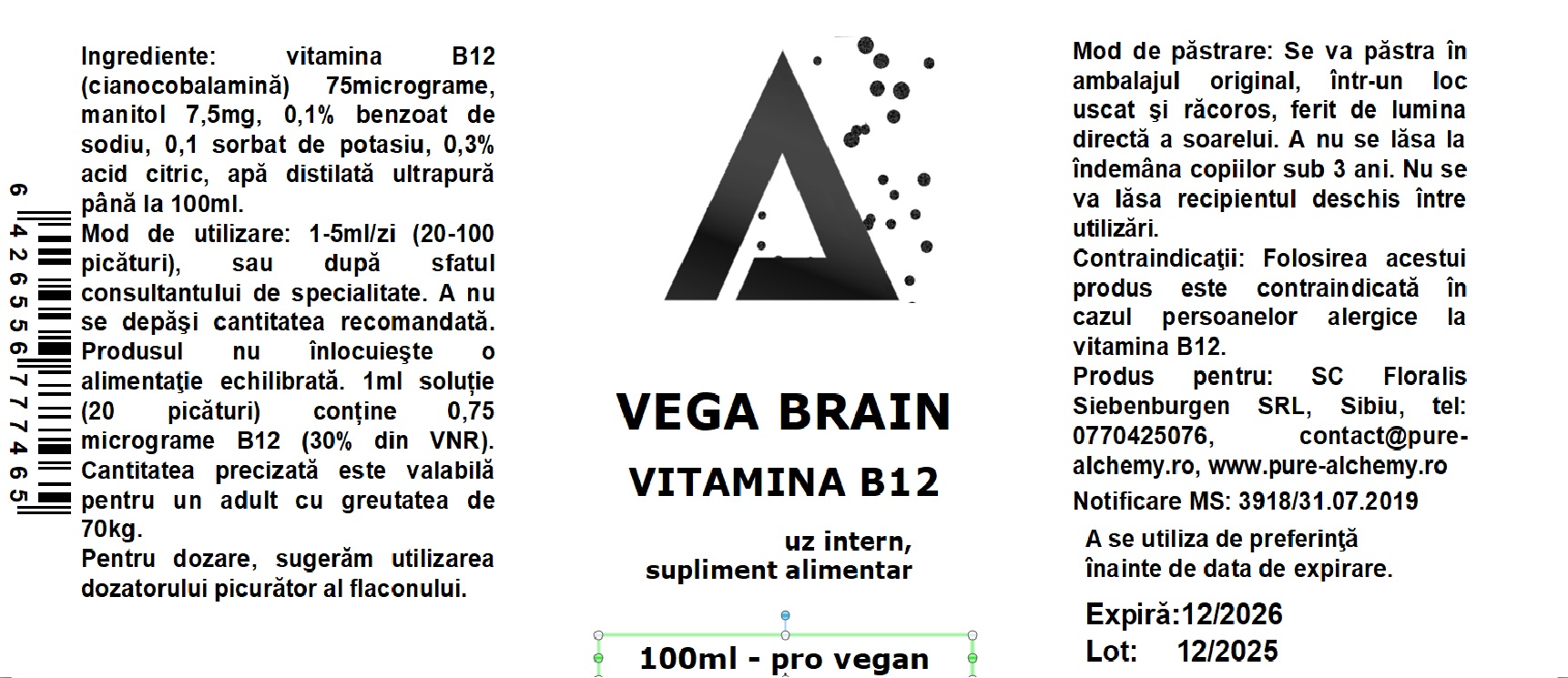 Vitamina B12 lichida Vega Brain Alchemy, 100 ml, Aghoras [6426556777465]