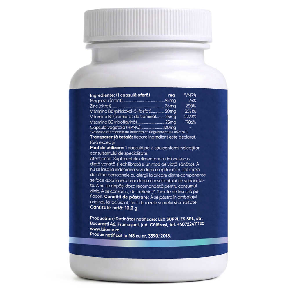 - P5P - forma activa de vitamina B6, sustinuta de magneziu si zinc;