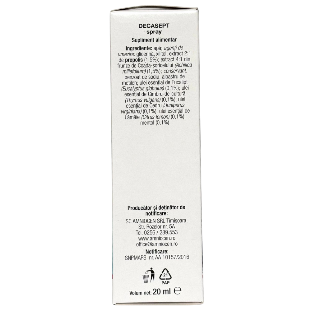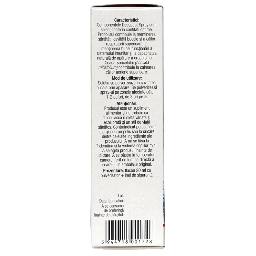 - componentele Decasept Spray sunt selecționate în cantități optime;