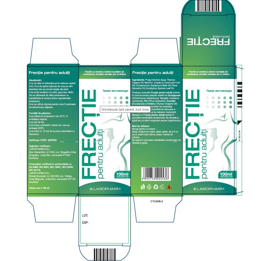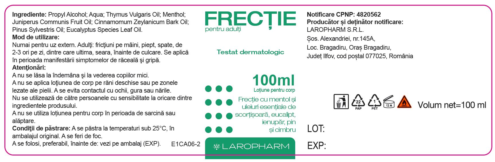 Ingrediente:Propyl Alcohol; Aqua; Thymus Vulgaris Oil, Menthol; Juniperus Communis Fruit Oil Cinnamomum zeylanicum Bark Oil; Pinus Sylvestris Ol; Eucalyptus Species Leaf Oi Produsul cosmetic FrecÅ£ie pentru adulÈ›i îmbină În mod armonios uleiurile volatile de ScorÅ£iÅŸoară (Cinnamonum Zeylanicum), lenupar (Juniperus communis), Pin (Pinus Sylvestris), Eucalipt (Eucalyptus) ÅŸi Cimbru (Thymus Vulgaris Ol complex de substanÈ›e