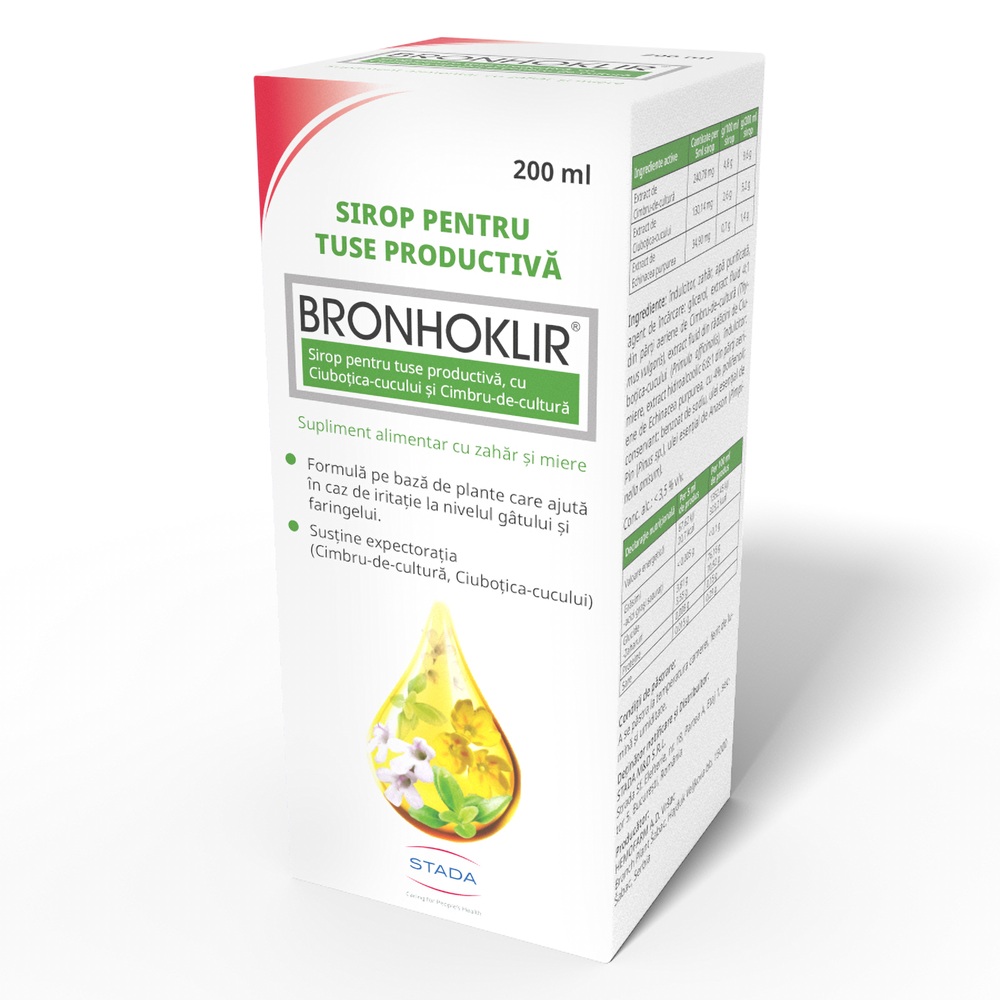 Informatii despre Sirop pentru tuse productiva Bronhoklir, 200 ml, Stada s-ar putea gasi in articolele:
