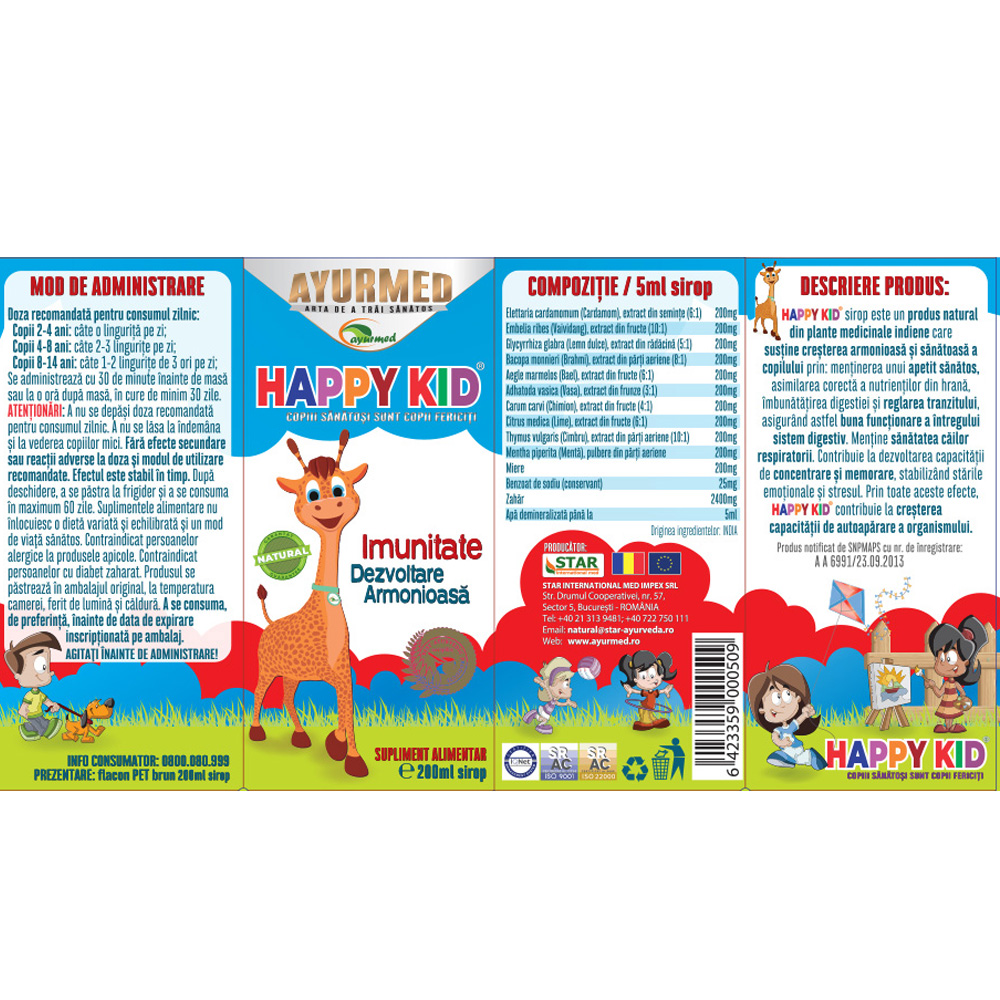 Sirop Happy Kid, 200 ml, Ayurmed [6423359000509]