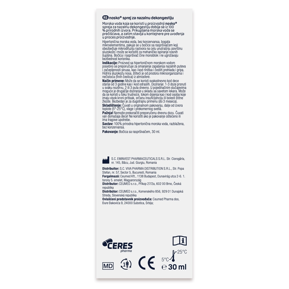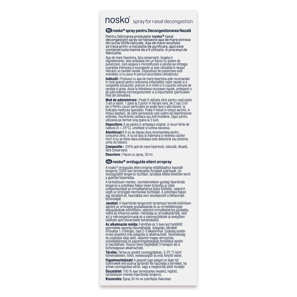 - pentru fabricarea produselor Nosko nasal decongestant spray se foloseste apa de mare extrasa din surse 100% naturale;