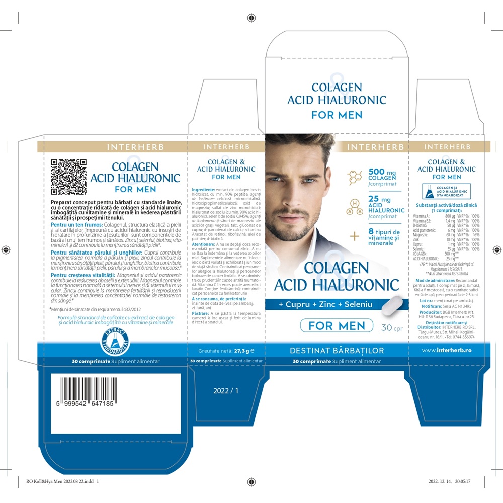 Colagen si acid hialuronic pentru barbati, 30 comprimate, Interherb [5999542647185]