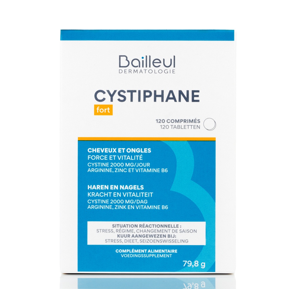 L-cystine, Agents de charge: cellulose microcristalline, talc, Agent d'enrobage: hydroxypropylméthylcellulose, Zinc (sulfate de zinc), Affermissant: carboxyméthylcellulose sodique, Agent d'enrobage: acides gras, Antiagglomérant: sels de magnesium d'acides gras, L-arginine, Colorant: riboflavines, Vitamine B6 (chlorhydrate de pyridoxine), Agent d'enrobage: cire de carnauba.