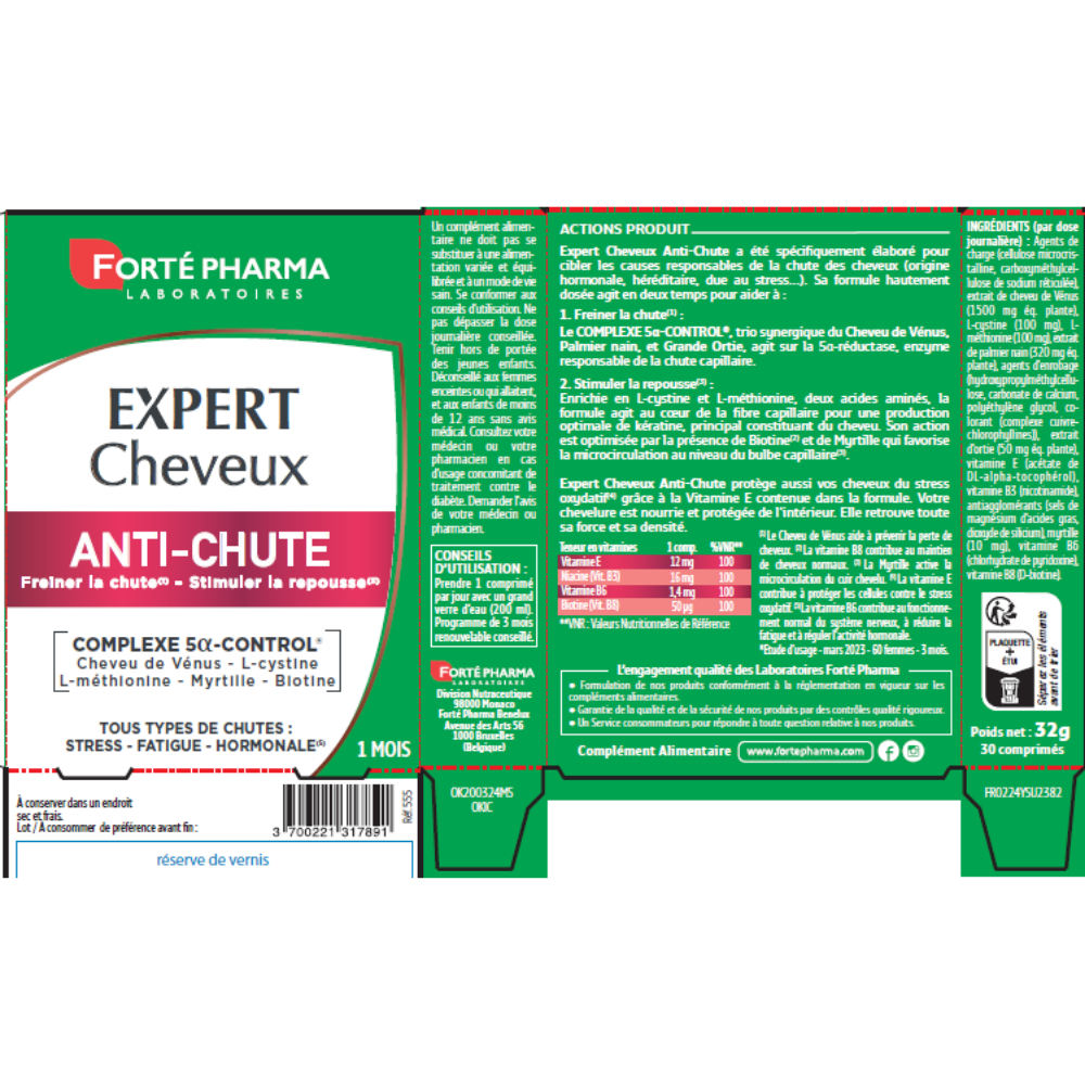 Informatii despre Expert Anti-Chute, 30 comprimate, Forte Pharma s-ar putea gasi in articolele: Alopecie (caderea parului).