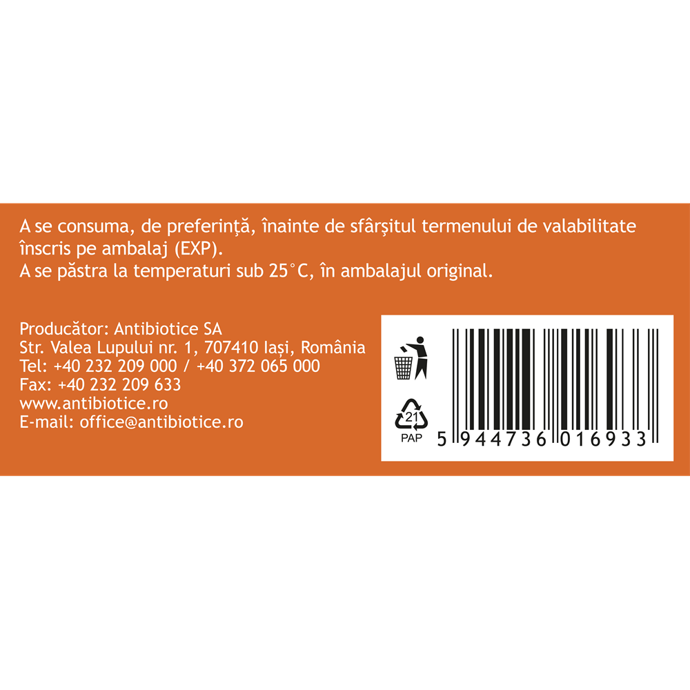 Precautii:Produsul este un supliment alimentar și nu trebuie să înlocuiască o dietă variată, echilibrată și un stil de viață sănătos.