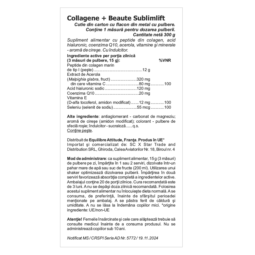 - suplimentul alimentar conţine colagen marin Naticol hidrolizat, acid hialuronic, coenzime si vitamine, cu peptide cu greutate moleculara mica, pentru o absorbtie optima;