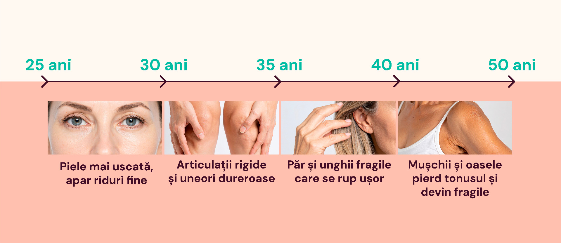 Calitatea colagenului produs e mai slabă.