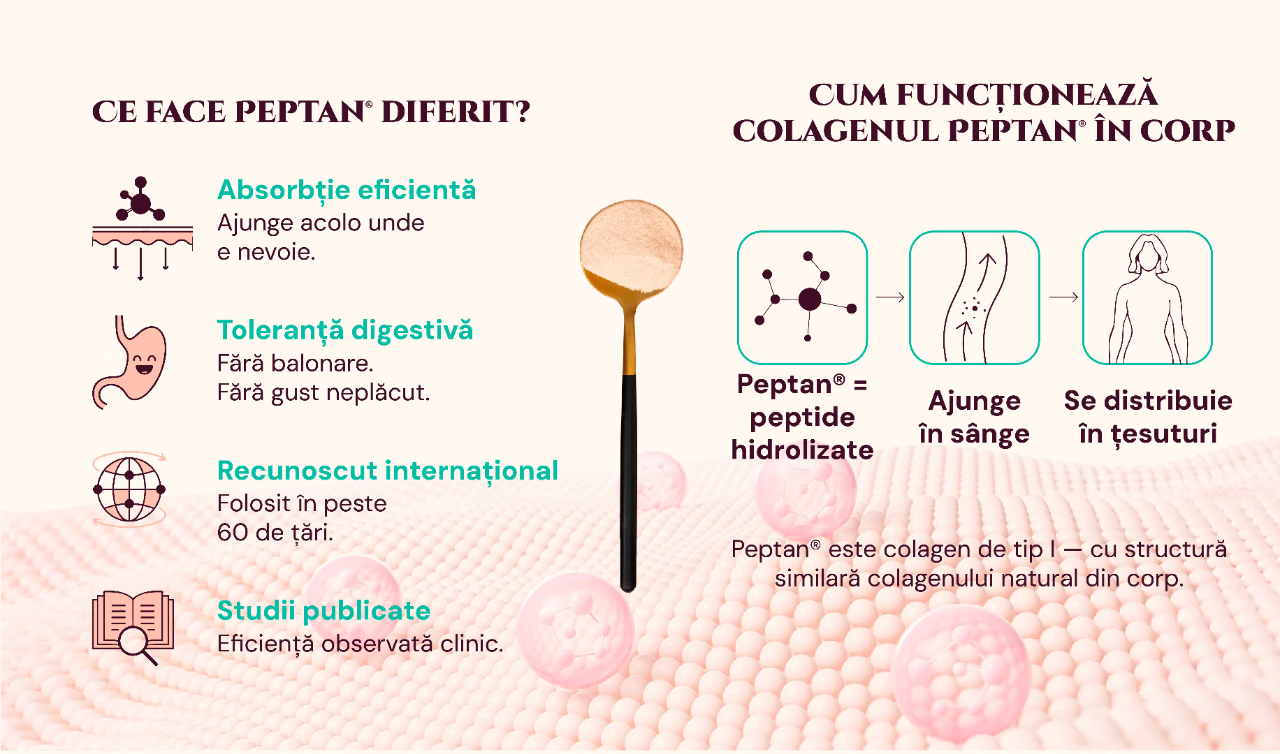 Peptan® este obținut printr-un proces special de hidroliză, care transformă colagenul în peptide ușor de asimilat de organism.