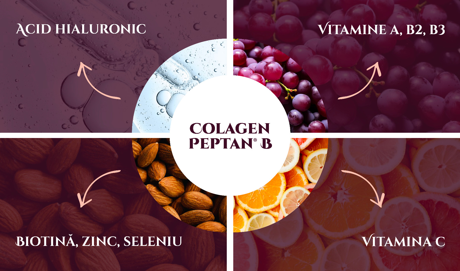 La bază stă Peptan® B: un colagen hidrolizat de tip I, care reprezintă aproximativ 30% din conținutul de proteine din corp. Intră în structura pielii, a oaselor și a vaselor de sânge.
